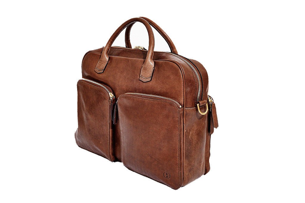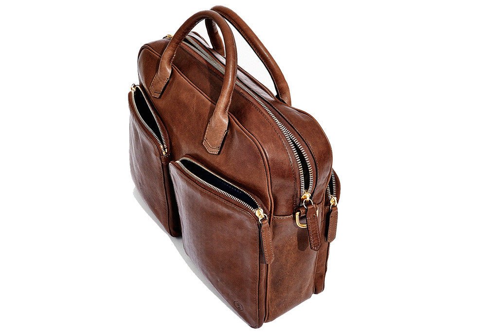 Three separate external pockets and an internal laptop or tablet sleeve stylishly accommodate daily possessions; leather is designed to age beautifully and personalize with use. A perfect balance of form and function. Adjustable leather shoulder strap.